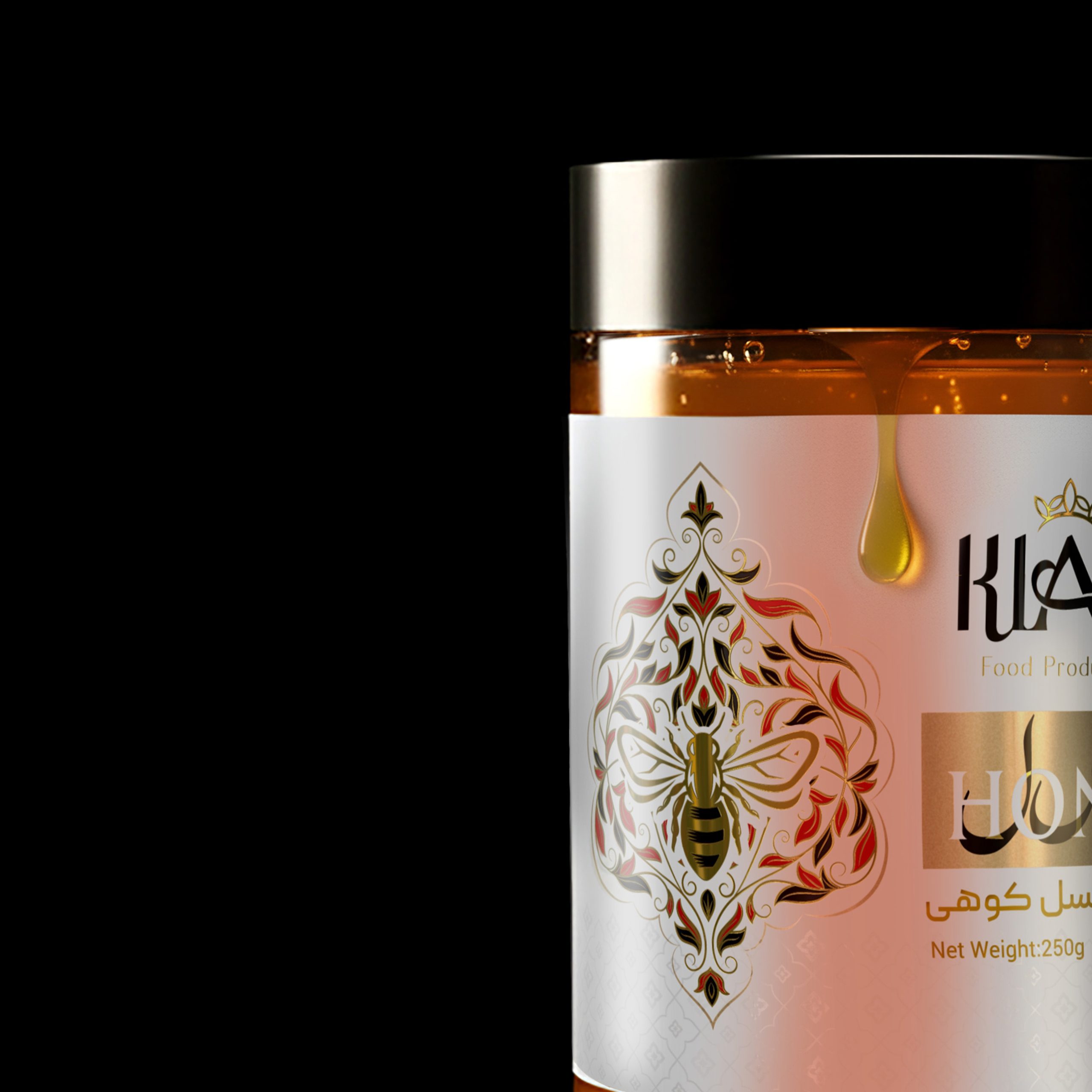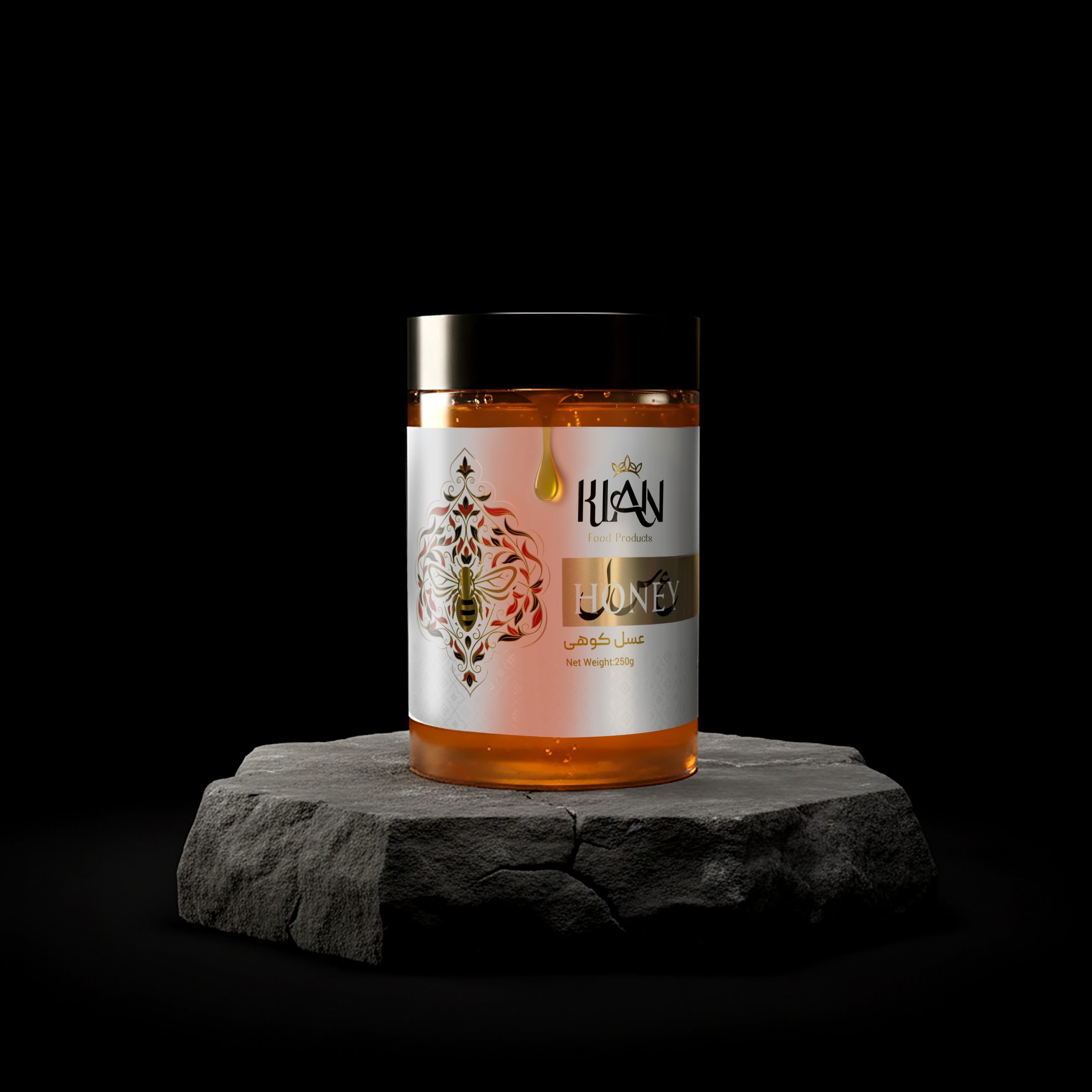 طراحی لوکس و پریمیوم لیبل عسل به سفارش برند کیان، مناسب بازار عسلهای صادراتی و هدیهای است. این طراحی با توجه به هویت برند انجام شده و بهگونهای شکل گرفته است که اصالت و ظرافت هنرهای افغانستان را حفظ و برجسته کند.