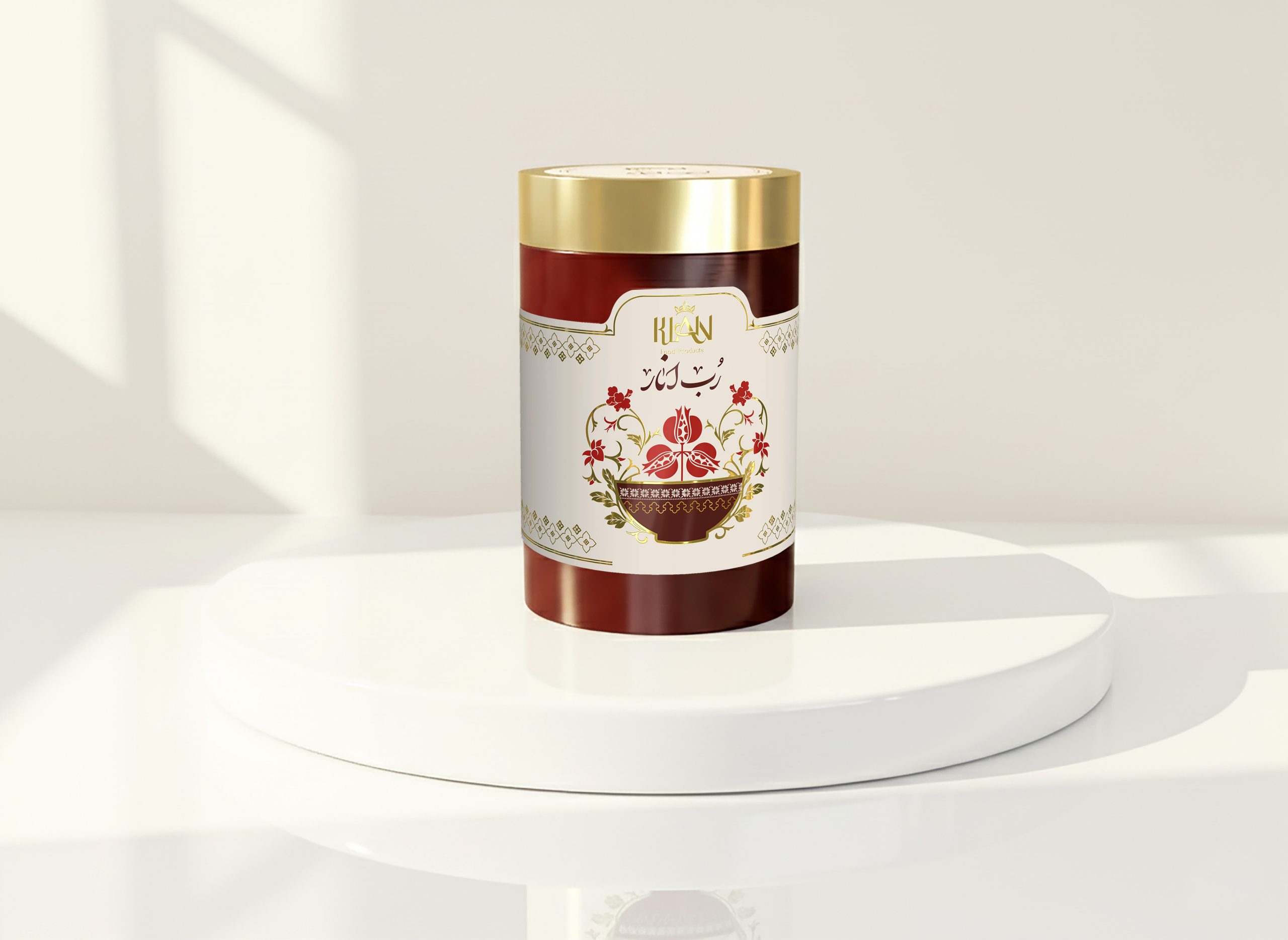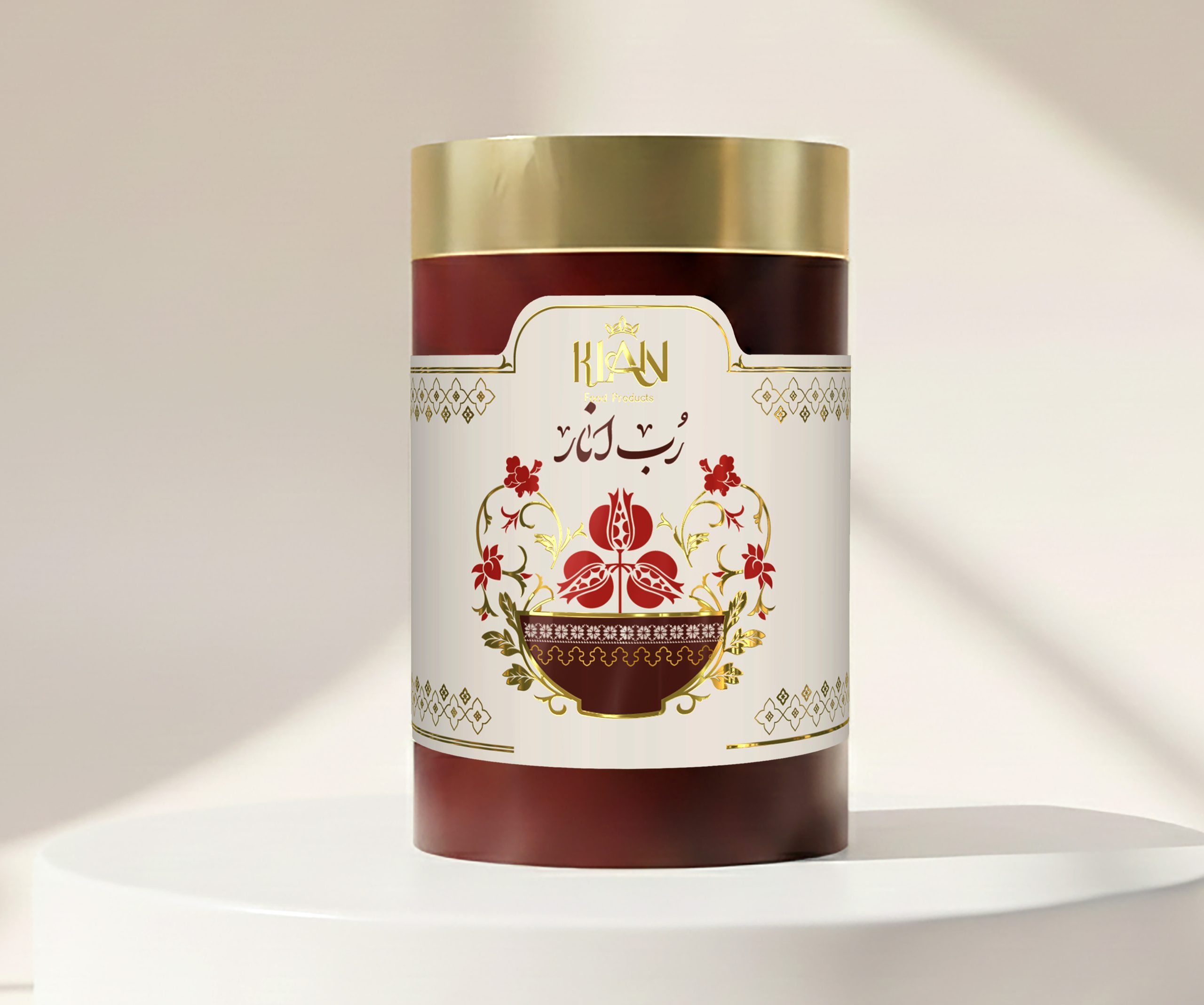 لیبل رب انار به سفارش برند کیان محصول افغانستان ، طراحی لیبل بهوضوح بر اصالت، سنت و فرهنگ منطقهای تأکید دارد. استفاده از موتیف ظرف دستساز افغانستان در مرکز لیبل، هویت بومی و روایت فرهنگی محصول را تقویت کرده و به مصرفکننده حس «محصول اصیل و دستساز» میدهد. این انتخاب، از نظر داستانپردازی برند (Brand Storytelling) بسیار موفق است
